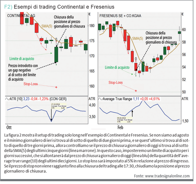 Se il limite di acquisto venisse attivato, e aprissimo una posizione in uno o più dei titoli DAX, allora dovremmo impostare ogni volta uno stop loss al 5%, secondo il tasso iniziale. Come è possibile vedere in figura 2, è importante prendere in considerazione che il tasso iniziale, in caso di un gap negativo più grande, possa differenziarsi dal limite di acquisto originale.