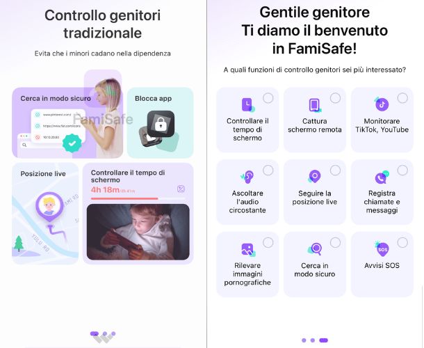 Ti segnaliamo infine FamiSafe Kids, un servizio molto utile e disponibile sia sul Play Store di Google che sull’App Store di iOS. Tra le tante funzionalità a disposizione dei genitori, c’è il monitoraggio del tempo di visualizzazione, il localizzatore GPS, la cronologia dell’attività telefonica, il blocco dei giochi, il filtro dei siti web e della cronologia.