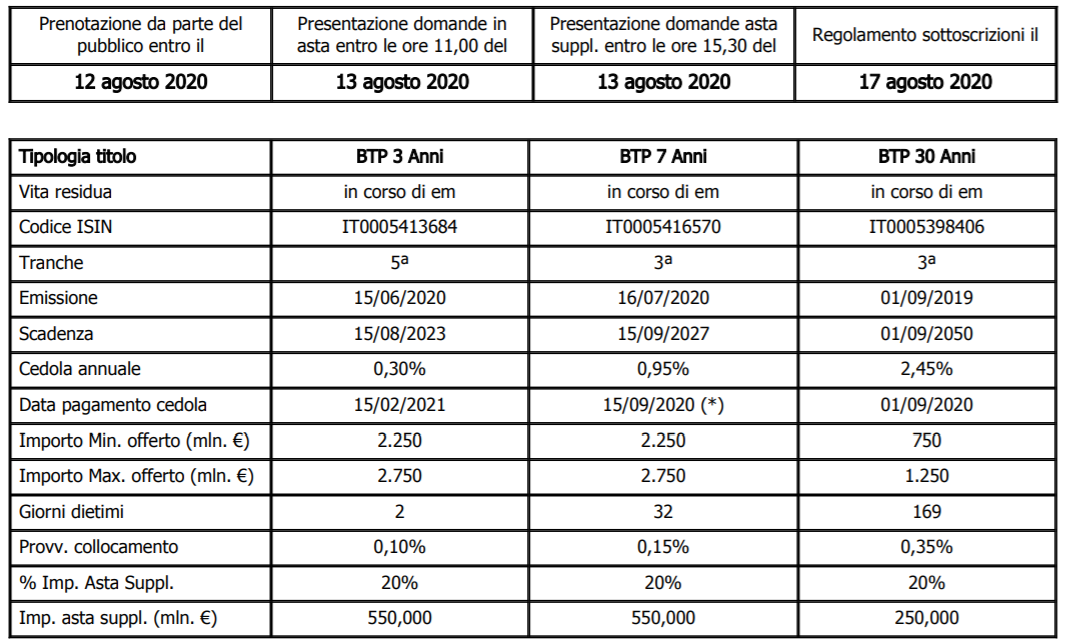 Questi tre titoli di Stato a medio-lungo termine saranno offerta tra un minimo di 5,25 miliardi e un massimo di 6,75 miliardi.