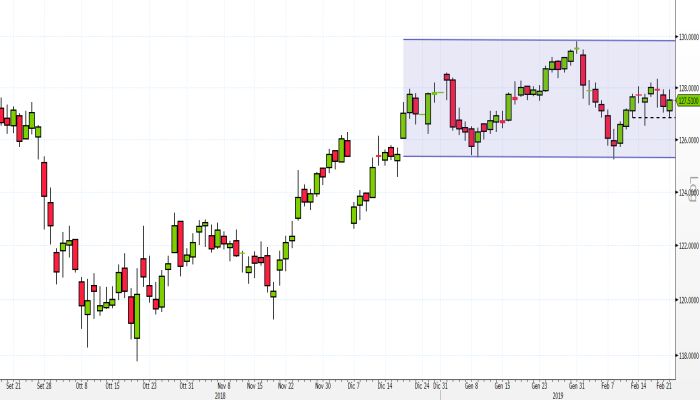 Per Marson "Il BTp Future scadenza marzo 2019 è sceso a quota 127 punti in avvio, per poi riprendersi in direzione dei 127,50 punti. Il sentiment e il nostro modello rimangono impostati su un giudizio neutro-positivo: gli investitori di brevissimo sono orientati al ribasso quelli di medio periodo ancora al rialzo. Possibile ancora qualche presa di beneficio in direzione dei 126-125,50 punti, dove si trova un importante supporto statico e psicologico, prima di un nuovo allungo".