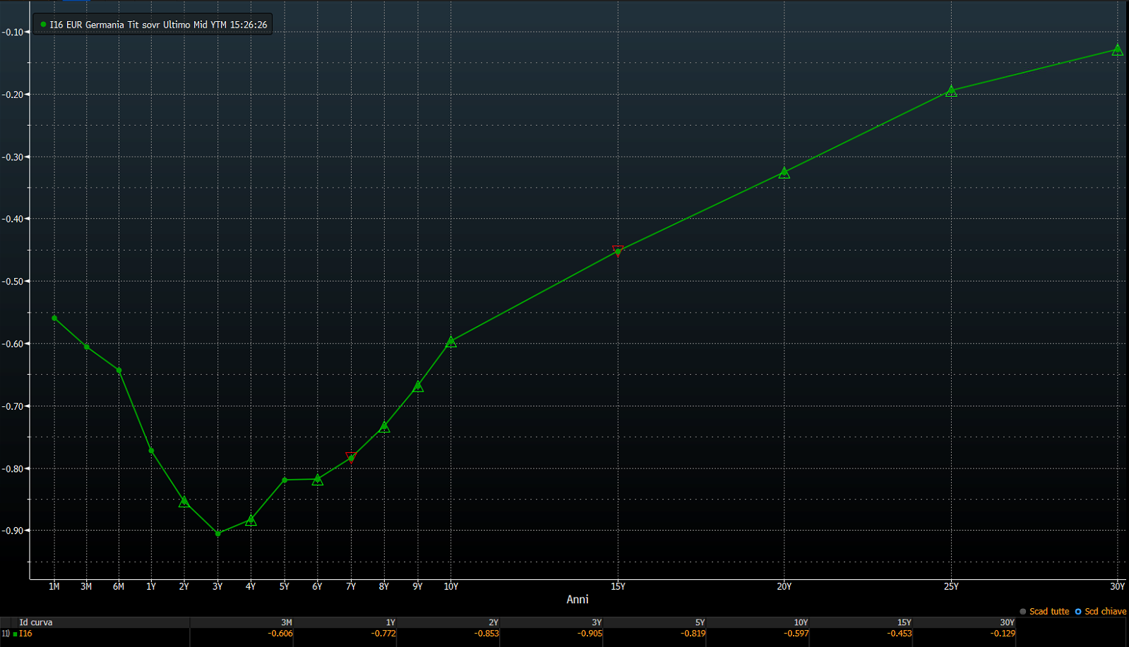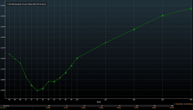Curva dei tassi della Germania. Fonte: Bloomberg