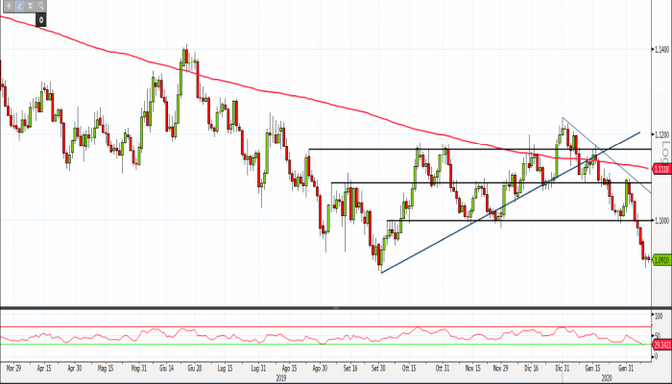 Un’eventuale ripartenza avrebbe quindi la possibilità di riportare i prezzi dapprima al re-test di quota 1,10, per poi passare a quota 1,1038, dove passa la trendline ottenuta collegando i massimi del 31 dicembre a quelli del 16 gennaio 2020.