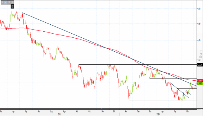 Se invece le pressioni dei venditori dovesse aumentare fino a spingere i corsi al di sotto di 0,4784 euro, si potrebbe assistere ad una serie di ribassi fino alla zona di minimi storici, al momento posti a 0,433 euro.