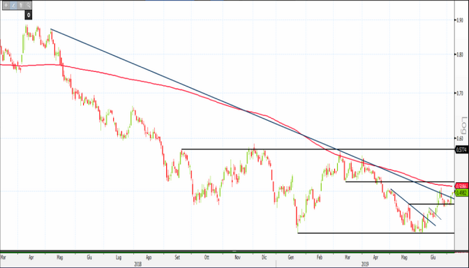 Dal punto di vista dell’analisi tecnica, i prezzi sono riusciti a riportarsi al di sopra della linea di tendenza che collega i massimi del 7 maggio a quelli del 7 marzo 2019, segnalando una buona presenza di compratori.