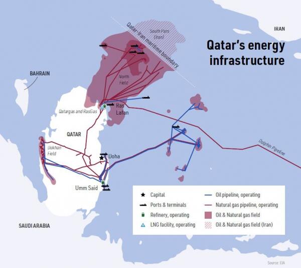 Mappa del progetto di gasdotto North Field Expansion in Qatar