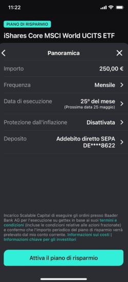 Visto che si tratta di operazioni di medio/lungo termine, Scalable Capital permette di adeguare l’importo scelto alla crescita dei prezzi (in questo modo l’importo che abbiamo scelto non sarà influenzato dalla dinamica inflattiva).