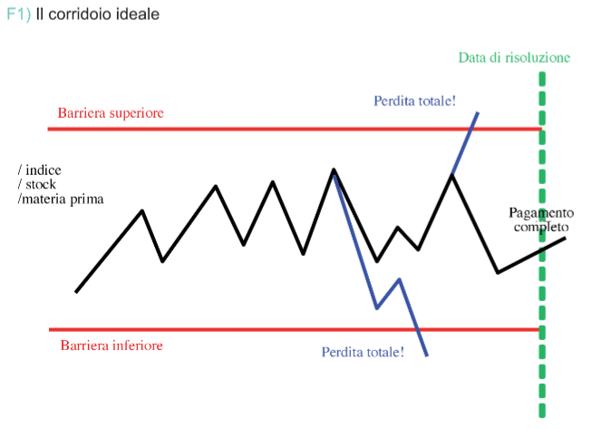 Vengono utilizzate per assicurare che il prezzo dello strumento sottostante si muova tra una barriera inferiore e una barriera superiore fino alla fine del termine senza toccarle.