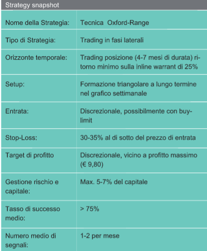Il periodo è limitato ad almeno quattro fino ad un massimo di sette mesi. Durante questo periodo, il margine di trading corrispondente, all’interno del quale si può muovere lo strumento di investimento, dovrebbe avere un’ampiezza sufficiente.